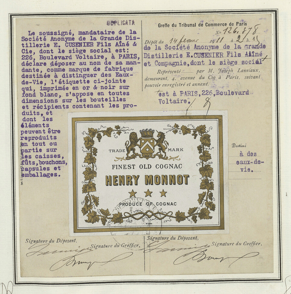 - Le soussigné, mandataire de la Société Anonyme de la Grande Distillerie E. CUSNIER Fils Aîné