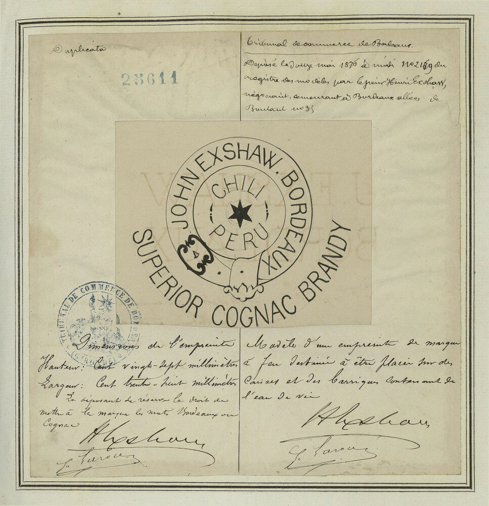 - JOHN EXSHAW. BORDEAUX CHILI PERU SUPERIOR COGNAC BRANDY