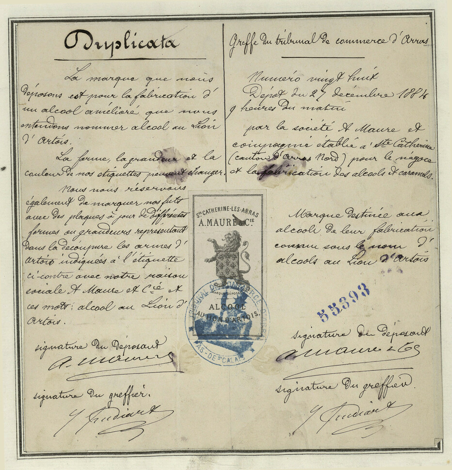 - Marque Détinée aux alcools de leur fabrication