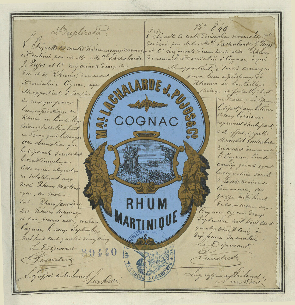 - M. L. LACHA LARDE J. PUJOS & CO COGNAC RHUM MARTINIQUE